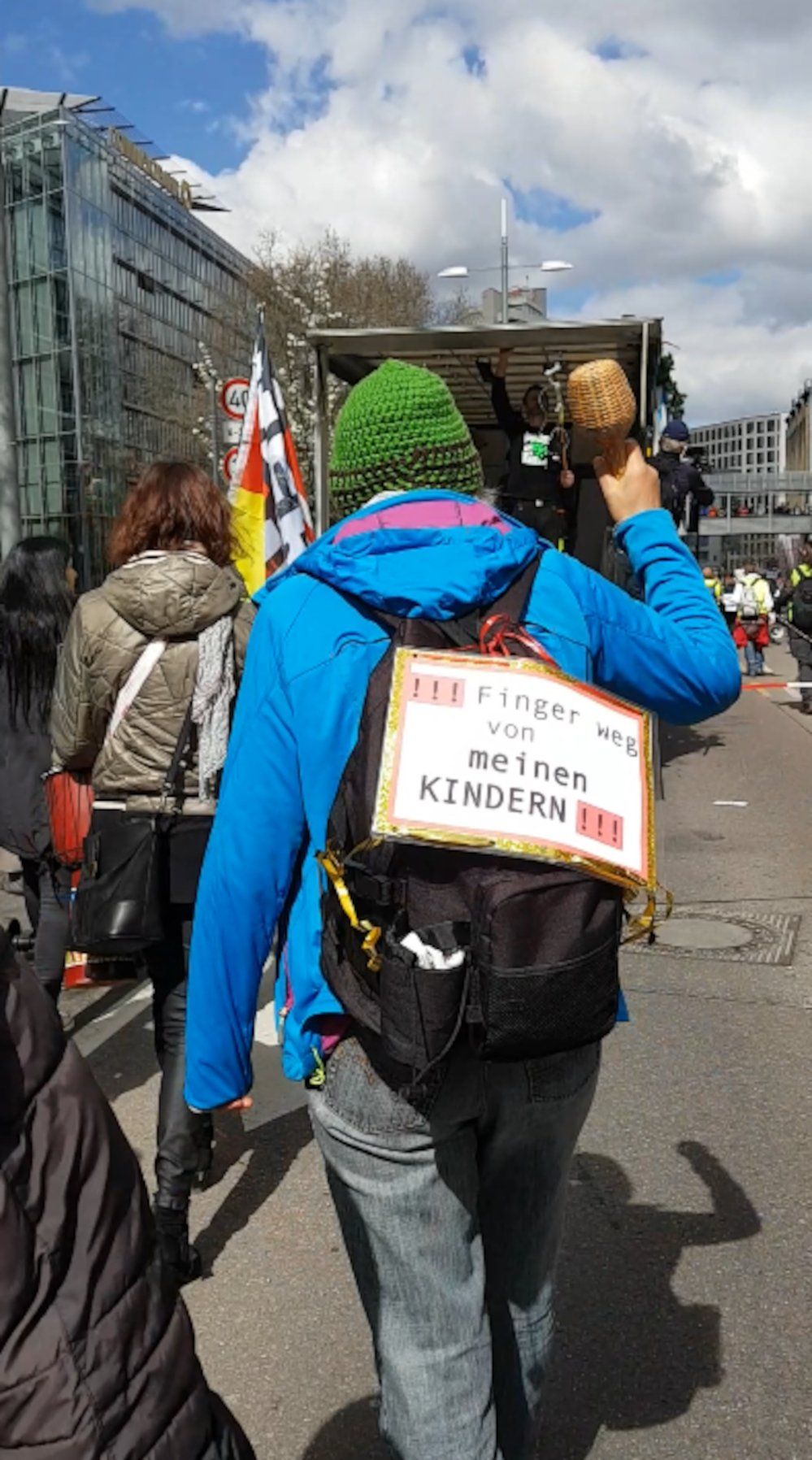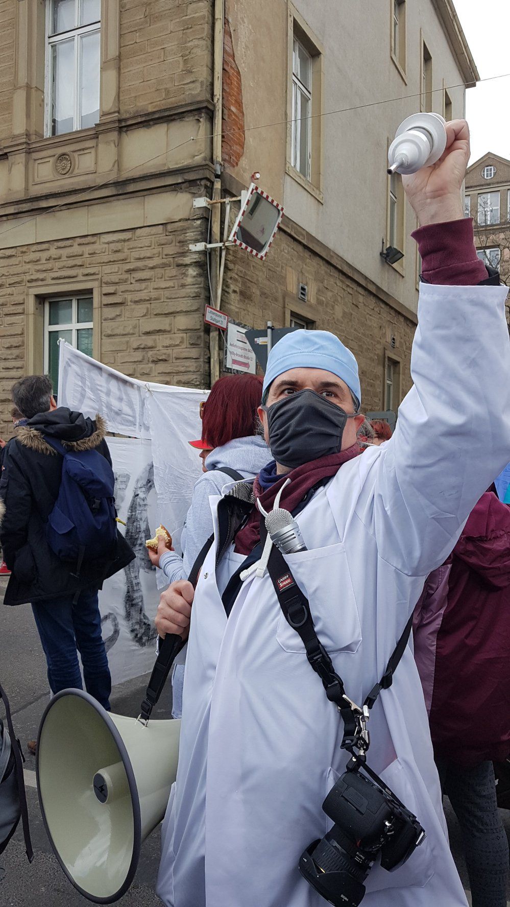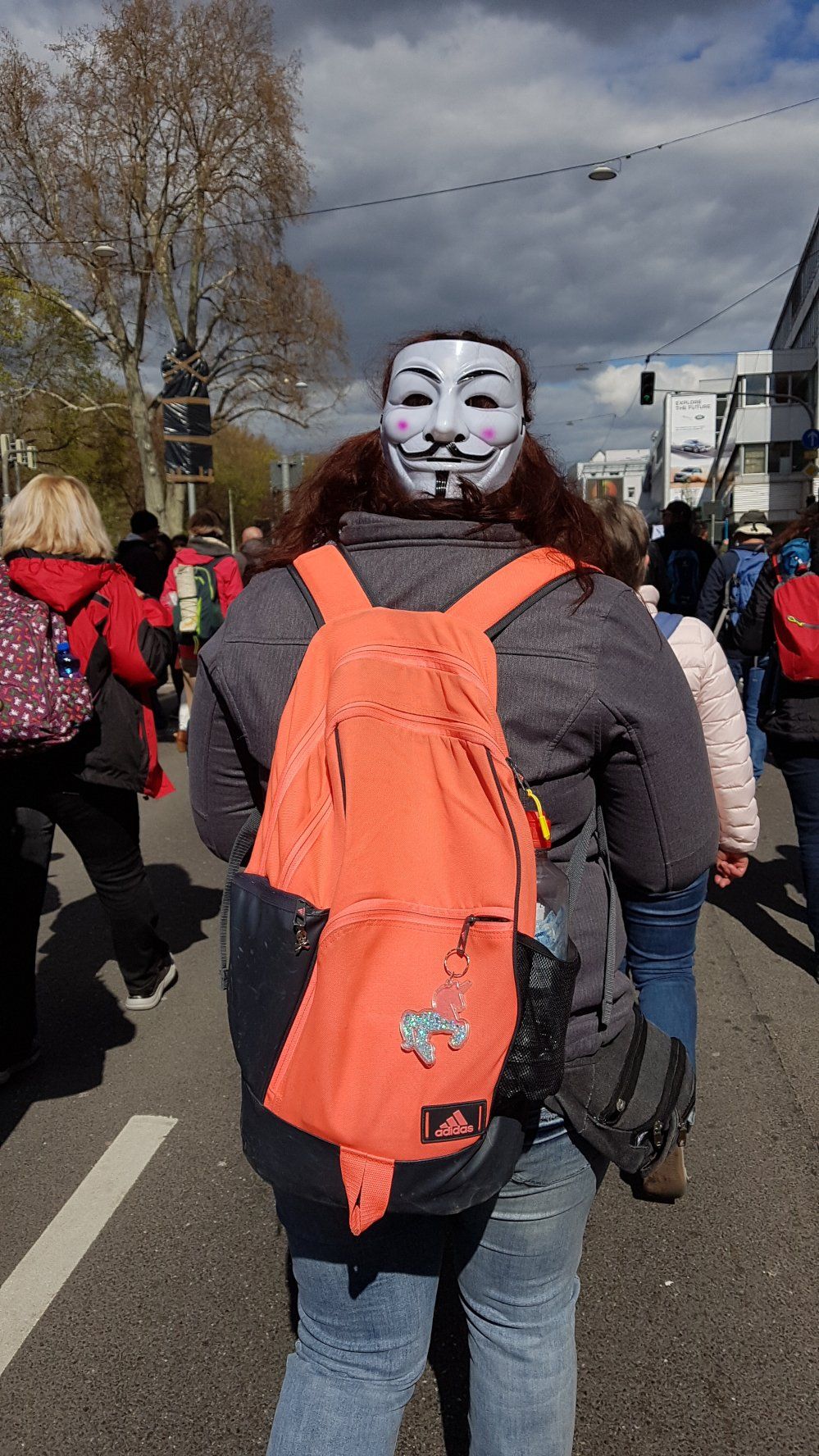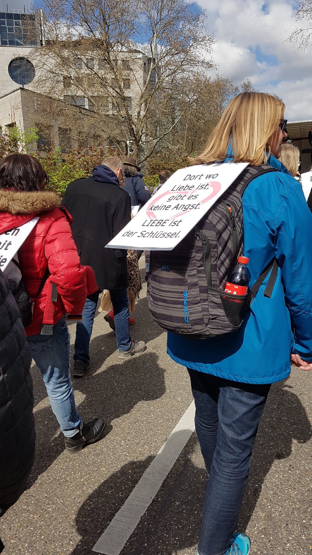 Auf dem Hauptbahnhof wurde er, da unmaskiert, sofort von einem jungen Polizisten angesprochen. Er durfte eben wegen, nicht den direkten Weg in die Stadt nehmen, sondern wurde des Seitenausgangs verwiesen. Wir trafen auf Verstärkung Gleichgesinnter, denen es ebenso erging.