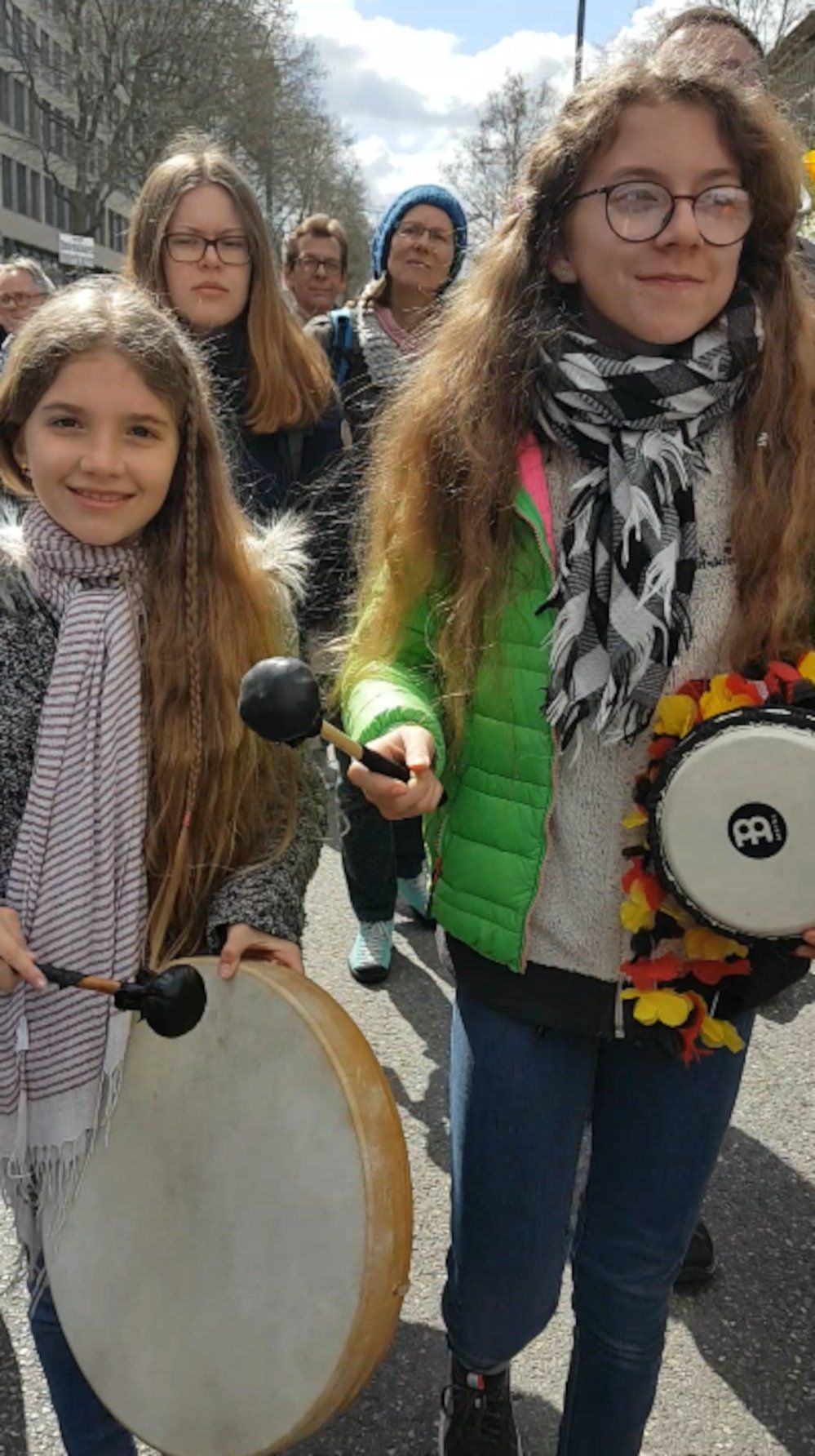 Vorbei an der Kundgebung vor dem Bahnhof, die aber nichts mit der von Querdenken zu tun hatte, erreichten wir die Königsstraße. Am Schlossplatz zogen wir am Impfzentrum vorbei. Von weitem waren schon Trommler zu hören.